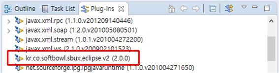 2) eclipse\configuration\org.eclipse.equinox.simpleconfigurator\bundles.info 파일에 kr.co.softbowl.sbux.eclipse.v2, 2.0.x,plugins/kr.co.softbowl.sbux.eclipse.v2_2.0.x.jar, 4,false구문추가
