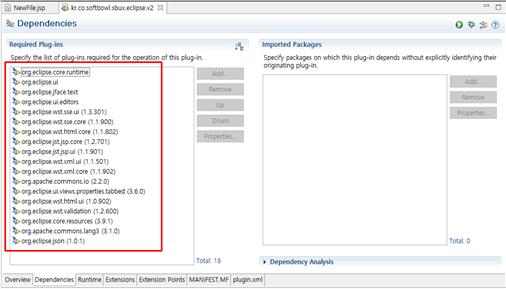 4) Required Plug-ins에 종속 라이브러리들이 정상적으로 import되었는지 확인